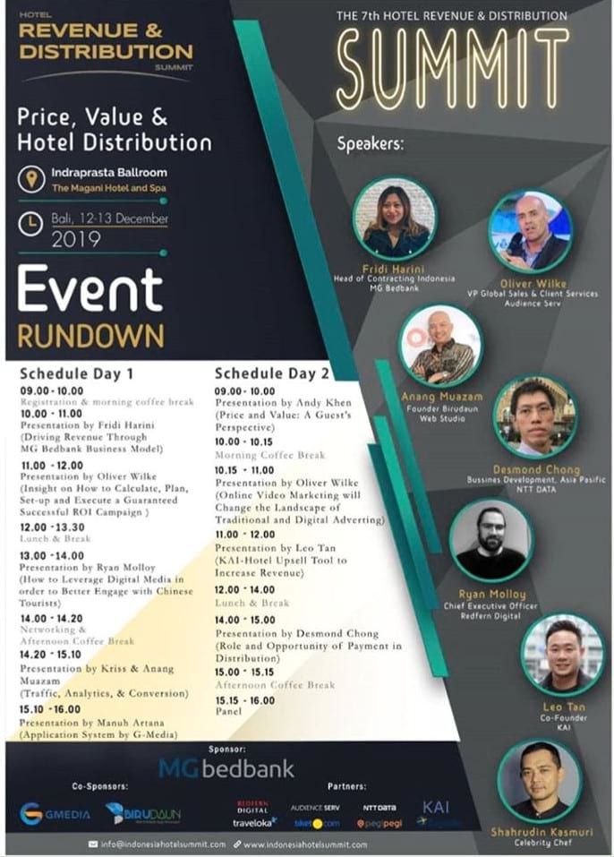 BiruDaun Web Studio was sponsor of the 6th Hotel Revenue & Distribution Summit 2019 Bali, which is a place for travel and hospitality professionals to share ideas and keep updated with recent trends and new technology in the industry, particularly related to hotel sales & marketing, e-commerce & digital marketing, and revenue management.